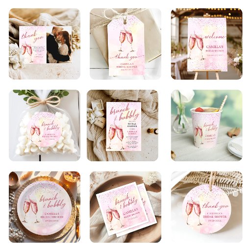 Pink Champagne Brunch And Bubbly Bridal Shower Thank You Card