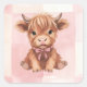 Pink Checkered Highland Cow Cute Gift Wrap Square Sticker