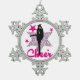 Pink Cheerleader Snowflake Pewter Christmas Ornament
