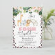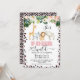 Girl's safari four ever wild fourth birthday invitation featuring a leopard or cheetah print pattern around the edge and a tropical floral arrangement at the top. Great for a safari themed girl's fourth birthday party.