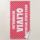 Personalised beach towel design for a girls' weekend vacation getaway features a custom first name in modern retro typography , with custom text for the occasion. The pink chequerboard background.