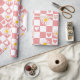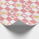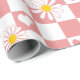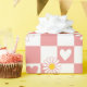 Wrapping paper featuring pink checks with daisies and hearts; perfect for wrapping children’s birthday gifts, baby showers, Valentine’s Day, and gifts for someone special in your life.