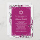 The text on this elegant magenta pink, black, and white cherry blossom floral Star of David Bat Mitzvah invitation is fully customisable. To change it use the personalise option. For more extensive text changes, such as changes to the font, font colour, or text layout, use the customise option. A beautiful cherry or apple blossom flower branch Bat Mitzvah invite. Girly and elegant.