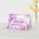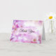 Thank you greeting card with a beautiful photograph featuring pink cherry blossoms. Dreamy image with bokeh lights and sparkles.
