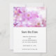 Save the date card with a beautiful photograph featuring pink cherry blossoms. Dreamy image with bokeh lights and sparkles.