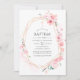 Trendy watercolor pink sakura baptism invite with rose gold geometric frame designed to be quickly and easily customised to your event specifics.