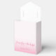 Pink floral wedding favour box with an illustration of a blossoming cherry tree branch with the names of the couple that is getting married and the date of the event.