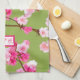 Pink Cherry Blossoms Chartreuse Green Monogrammed Tea Towel