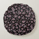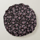 Pink Cherry Blossoms On Black Round Cushion