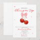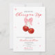 Celebrate the upcoming arrival with this charming pink cherry-on-top baby shower invitation! Featuring a sweet cherry in the centre, surrounded by delicate pink stars and a lovely bow, it’s the perfect way to invite loved ones to a joyful celebration.