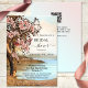 Original bridal shower invitation featuring a painting of a blossoming cherry tree with pink butterflies overlooking a dreamy ocean or lake. On the back is an (optional) easy to customise QR code template.