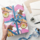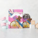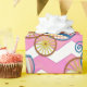 Chic Pink Chevron Baby Carriage Pattern Wrapping Paper by ITD Colours Galore features our unique candy colour pink with our signature texture in a zig zag pattern in the background with our original illustration of a cute and colourful vintage baby pram holding a cuddly teddy bear in a diagonal pattern over the top.