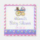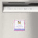 Pink Chevron and Purple Baby Shower Customisable Party Favour Magnet or Save the Date Magnet by ITD Colours Galore features our original art of a colourful old fashioned baby carriage with a teddy bear inside on the top of the white square with "Hanna's" Baby Shower, and the date in the middle. Be sure to customise the name and date. On the bottom is a purple band with our signature texture with a rattle and pacifier pattern running through it.