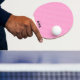 Novelty pink and white chevron pattern ping pong paddle for table tennis Funny zigzag pattern design. Sports game gift idea for men women and kids. Personalised name or monogram. Zig zag stripe print. Custom background colour.