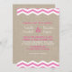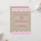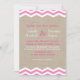 Bright pink and white chevrons on an illustrated burlap background accent this wedding invitation. Scroll down to see the complete collection.
