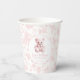 Pink elegant watercolor teddy bear with floral seamless pattern baby girl shower paper cups.