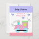 Celebrate a new baby with this cute pink choo choo train design. Fun borders and little birdies flying above the train. Customise with your information as desired.