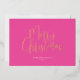 These trendy pink Christmas cards feature the words "Merry Christmas" in elegant gold foil script typography. The card reverses to a unique and colourful watercolor poinsettia floral pattern with your photo. Use the template fields to add your personalisation. A unique and bright choice for your pinkmas holiday greeting cards. To see the matching Christmas party theme visit https://www.zazzle.com/collections/unique_christmas_cards_invitations_wrapping_paper-119501723387216239