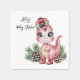 Celebrate your little one with this adorable baby girl shower invitation featuring a sweet pink dinosaur wearing red boots and a festive green and red bow. Surrounded by pine branches and snowy pinecones, this design is perfect for a winter or Christmas-themed baby shower. A charming choice for moms-to-be who love cute and whimsical designs!