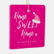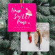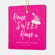 Modern trendy casual typography home sweet home script with a little heart and Santa hat making a festive Christmas holidays pretty trendy hot pink tree ornament. +++++++++++ Personalise it with your family name and established year on the front side and with your photo on the backside! It can be a chic tree decor for your home during the holidays or a nice keepsake Christmas gift for newlyweds, housewarming, first home, new home, or family or friends anniversary.