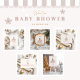 Celebrate a winter baby shower with this soft and festive design featuring hand-painted pastel gift boxes stacked beneath a frosted Christmas tree. Blush tones, gold stars, and cosy holiday details add a sweet, elegant feel—perfect for welcoming a little one during the most magical time of the year.