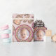 This Christmas Gingerbread Cookies Baby Photo Wrapping Paper features baby-themed hand-drawn illustrations by Nathalie Portet of candy canes, hearts, rattles, bottles on a blush pink background. Personalise with a photo of your baby into the charming round gingerbread cookies.