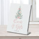 Create a stylish drop-off spot for cards and gifts with this pedestal sign. The soft watercolor Christmas tree with pink floral accents and bow adds a festive, feminine touch to your baby shower.