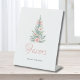 Guide guests to your treats in style with this elegant favours sign. Featuring a soft watercolor Christmas tree adorned with blush pink flowers and a pink bow, it’s the perfect way to coordinate your winter or holiday baby shower décor while letting guests know where to pick up their favours.