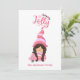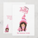 nd cheerful holiday wishes with this Pink Jolly Gnome Girl Holiday Card! Featuring an adorable gnome with dark brown braids, a striped pink hat accented with snowflakes, and a matching pink Christmas tree, this design offers a playful and heartwarming way to spread joy. The bold “Jolly” lettering at the top, paired with delicate snowflakes and festive berry sprigs, perfectly captures the season’s spirit of fun and celebration.