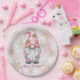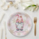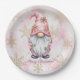 Pink Christmas Gnome Gold Snowflakes Paper Plate