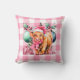 Pink Christmas Highland cow Merry Christmas plaid throw pillow