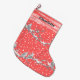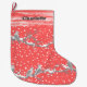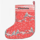 Christmas stocking features a cute birds and snow pink background paired with chic black typography for your custom name. Includes the same design on both sides of the stocking.