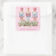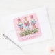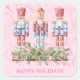 Pretty in pink! Lovely square holiday sticker with a trio of smartly dressed nutcrackers standing atop Christmas evergreens and Christmas balls with a lovely decorative pink background. "Happy Holidays" is written on the bottom. Utilise on envelopes, gifts, and more!