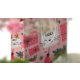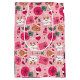 A playful pattern featuring cute animals and festive decorations on a pink background.