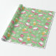 Pink Christmas Pattern With Green Background Wrapping Paper