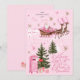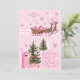 Pink Christmas Santa Reindeer North Pole Village Holiday Card
