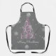 Bring seasonal elegance to your kitchen with this Pink Christmas Tree and Snowflakes Apron. Showcasing a classic Christmas tree illustrated with fancy flourishes and adorned with delicate white snowflakes, the design rests on a soft grey background for a timeless winter theme. A graceful Merry Christmas message in elegant script enhances the simple layout, making this apron a stylish choice for cooking, baking, or hosting. Perfect as holiday kitchen gifts or as a festive accent for your own holiday traditions.