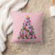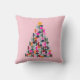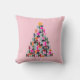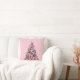 A cute Christmas tree in pink, featuring abstract shapes with a mid century modern design. A festive and modern design for the Christmas season.