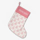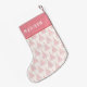 Pink Christmas Tree Girly Modern Personalised Name Stockings features your personalised name on a pink background with a simple modern Christmas tree pattern. Designed by ©Evco Holidays www.zazzle.com/store/evcoholidays