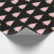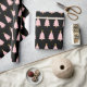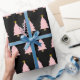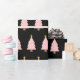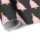 Pink Christmas Tree Line & Golden Star on Black Wrapping Paper