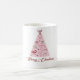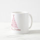 Minimalist pink Christmas tree mug with festive bows. Perfect for cozy mornings, hot cocoa, and Christmas gifting.