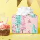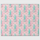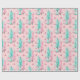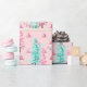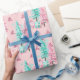 Pink Christmas Tree Pattern Teal Holiday Wrapping Paper