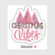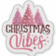 This cheerful sticker showcases three pink Christmas trees, adorned with shiny ornaments and delicate snowflakes. The playful text Christmas Vibes adds a joyful spirit, making it perfect for holiday greetings, decorations, or festive crafts.