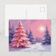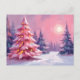 Pink Christmas Trees Pastel Winter Watercolor Holiday Postcard