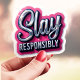 Serve glam vibes with this Pink Slay Responsibly Aesthetic sticker featuring metallic script and bold pink background. Perfect for laptops, phone cases, water bottles, or journals. Printed on premium glossy vinyl with vibrant colours that last. A fun and cheeky gift for baddies, besties, and anyone who loves a little sparkle with their hustle. Slay away... but do it responsibly.