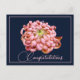 Pink Chrysanthemum Navy Backdrop Congratulations Postcard