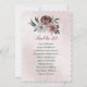 Beautiful botanical seating chart card featuring romantic pink, white and cinnamon rose/ chianti flowers with green leaves.