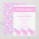 Personalise these adorable IT'S A GIRL! baby shower invitations in pink, white and lavender and create a circus or animal theme party. Mix and match with coordinating Pink Circus items available exclusively in my shop. The front of this cute invitation features a pink banner across the top and a little parade of my pink elephants juggling purple balls along the bottom. The full Pink Circus pattern is printed on the back of this girly baby shower invitation for loads of fun.