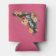 Rep your home state or favourite vacation spot with this cute Florida can cooler featuring a silhouette map of the state adorned with colourful tropical flowers, green foliage, and juicy oranges on a vibrant pink background. The name of the state is inscribed inside in hand lettered script.