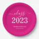 Stylish elegant custom graduation party supply! Celebrate the graduate's accomplishment in style with this trendy graduation party paper plates. Design features "Class of 2023" in white stylish font on a bold pink background. Personalise this product by adding the year of graduation, graduate's name and school or favourite quote. Easy to customise. Matching graduation party supplies available. Congratulations!